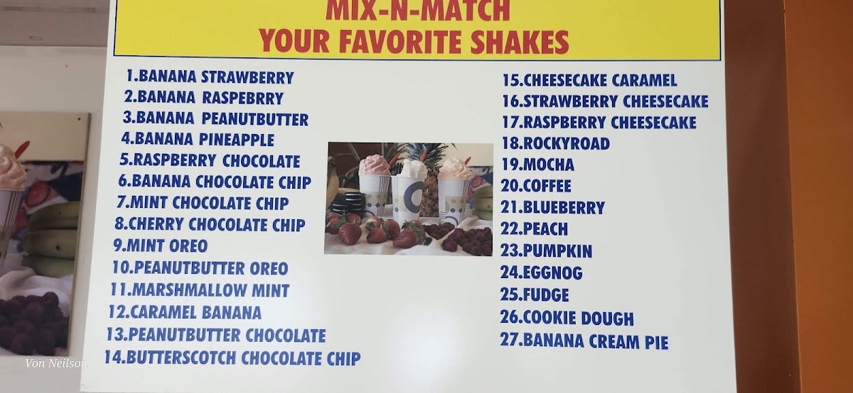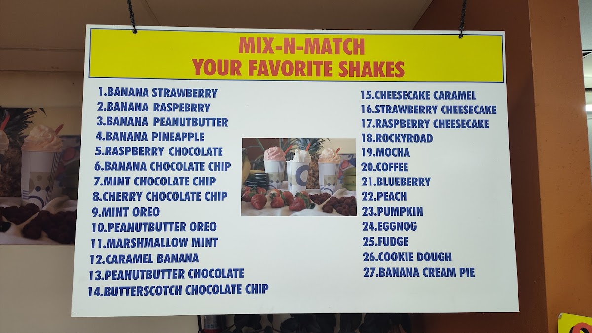 Smooth and creamy shakes and malts. Chocolate Graham Strawberry Cracker Oreo Marshmallow Mint Malt Raspberry Pumpkin ChocolateS Chip Banana Caramel Mocha Cherry Cheesecake Butterscotch Coconut Pineapple Rocky Road Peanut Butter Smore Orange Coffee
